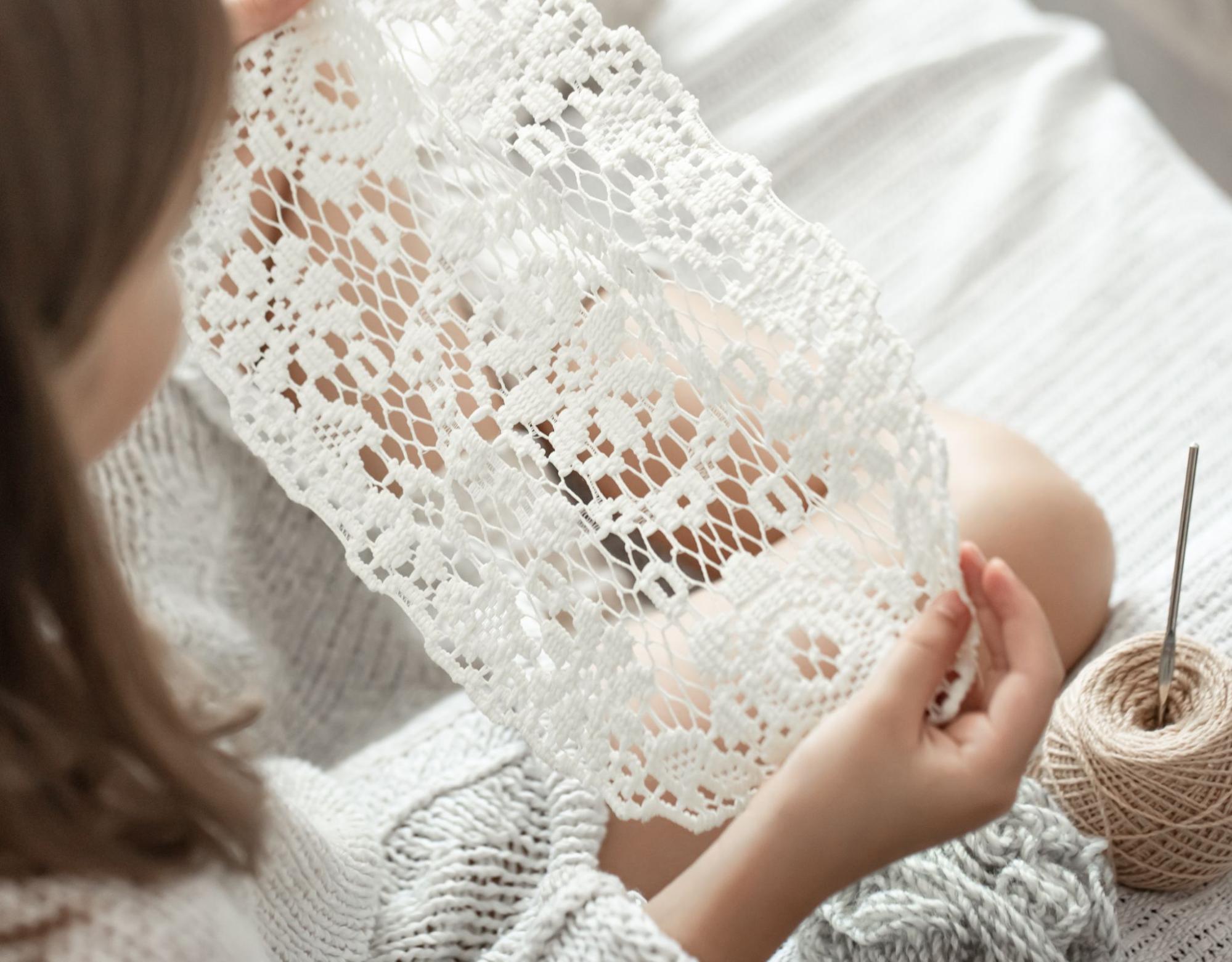 - Пушистую пряжу не берём: она “съест” изящество кружева и собирает пыль.