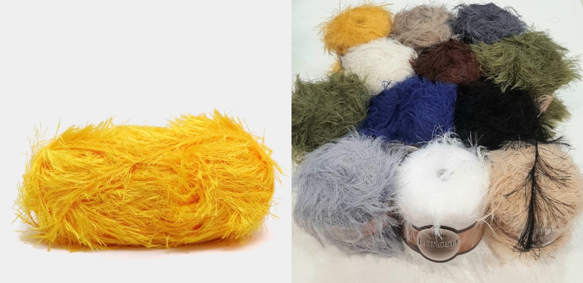 Эта пряжа обычно изготавливается из синтетических материалов, таких как полиэстер или нейлон, благодаря чему она получает свою уникальную текстуру, напоминающую мягкую траву.