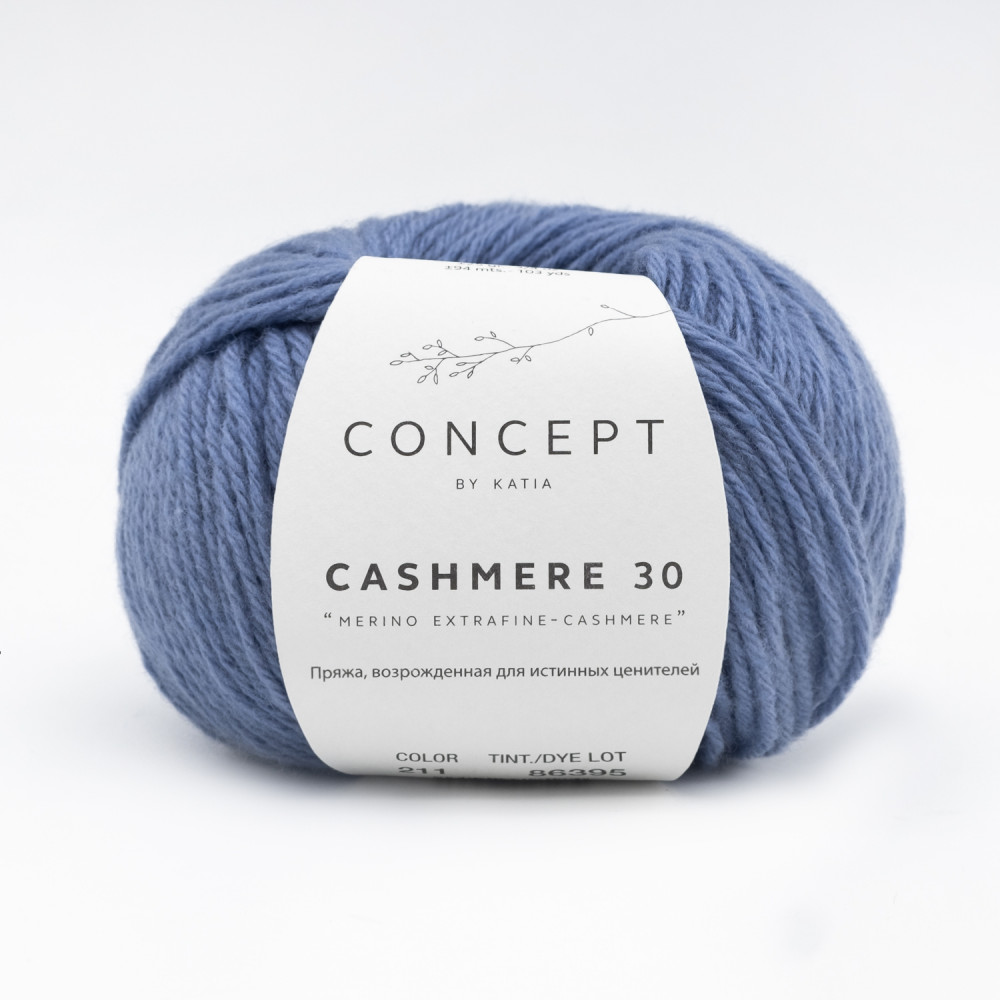 Cashmere 30 - название подчёркивает благородный характер пряжи и наличие кашемира, символа мягкости, уюта и высокого качества.