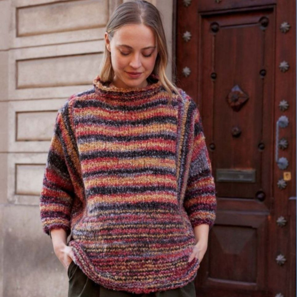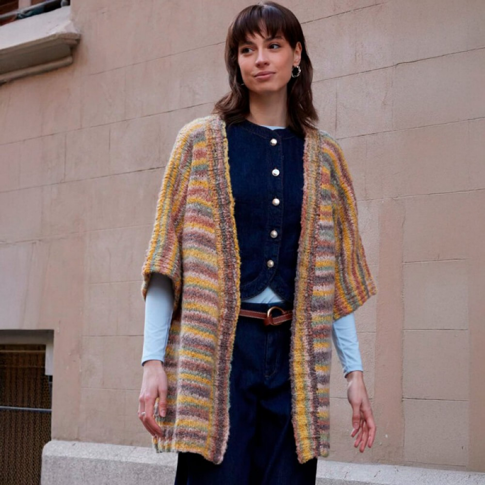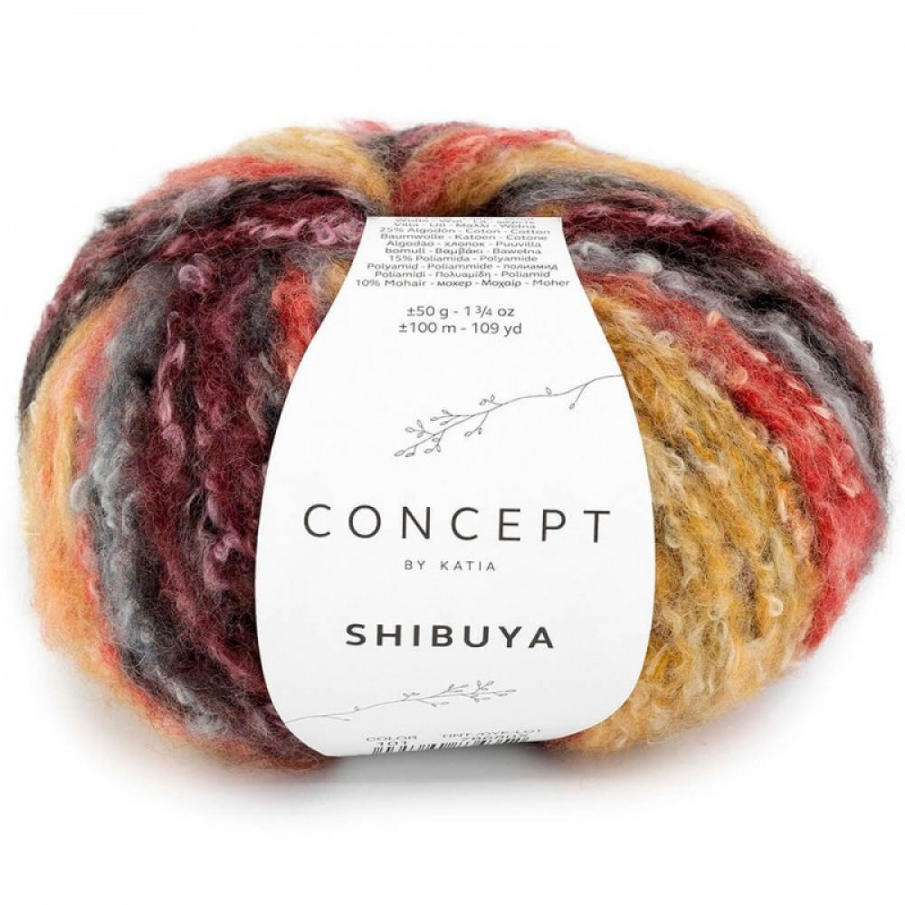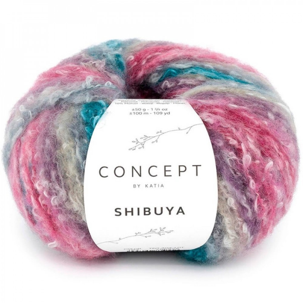 Katia Shibuya - это мягкая и легкая пряжа с пушистой текстурой и художественным разноцветным эффектом. Смесь мериноса, хлопка, мохера и полиамида делает его идеальным для создания стильной и удобной одежды.