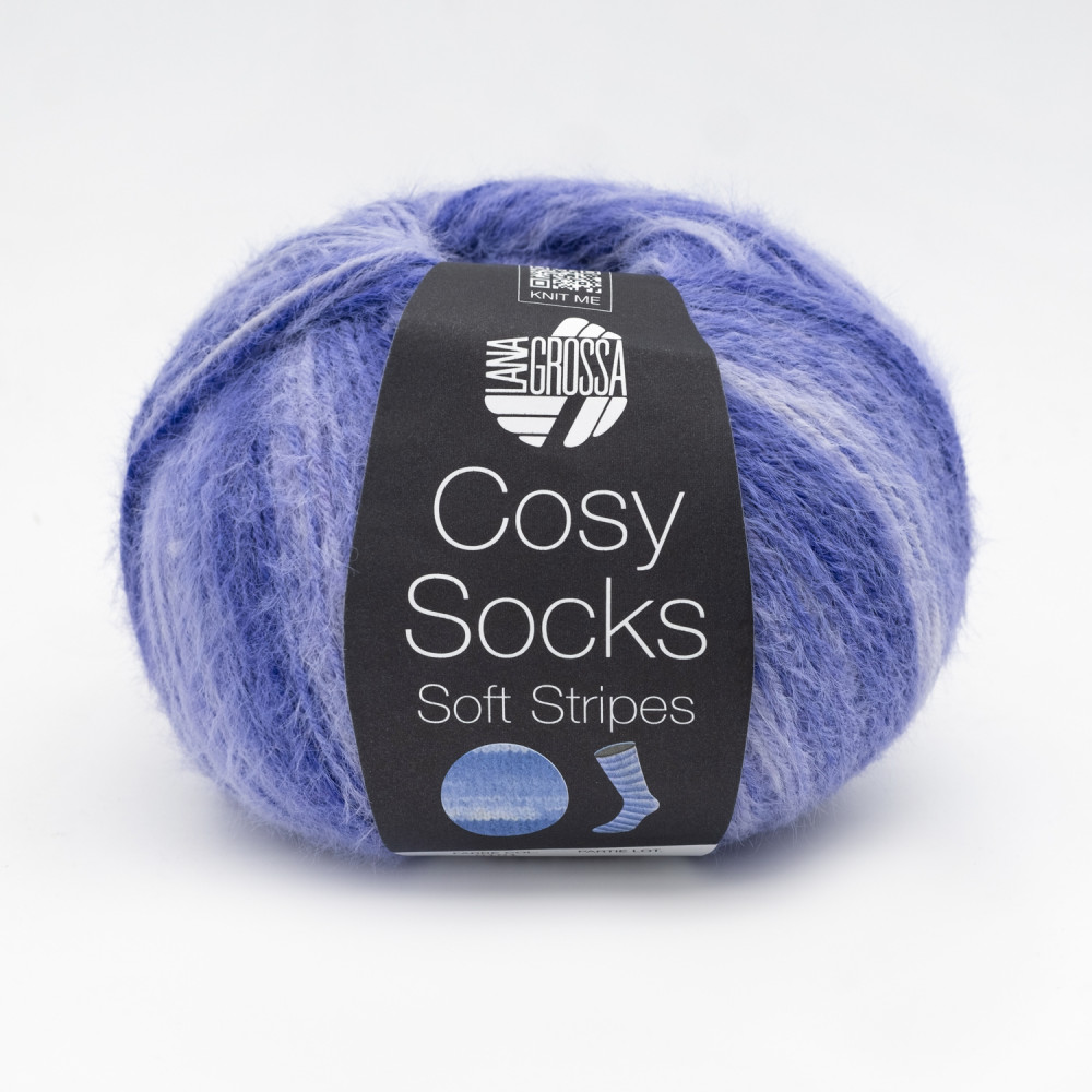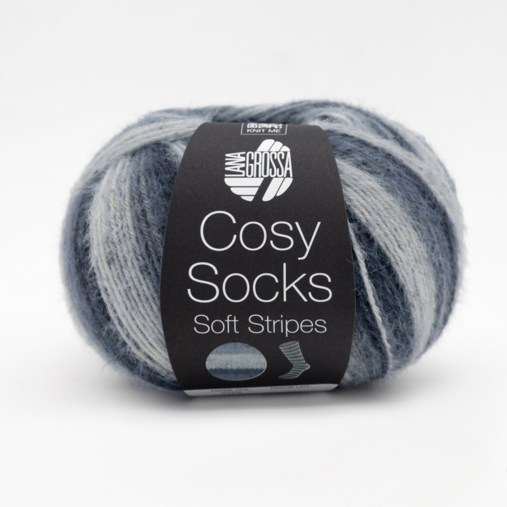 Cosy Socks Soft Stripes — название отражает уютный характер пряжи и мягкие полосатые переходы цвета, создающие эффектный узор без сложных приёмов. В составе — мериносовая шерсть с добавлением синтетических волокон для прочности и износостойкости. Нить мягкая, тёплая и приятная к телу, комфортна даже при длительной носке. Идеально подходит для носков, а также для варежек, шапок, шарфов и домашних аксессуаров.