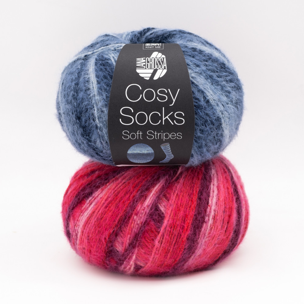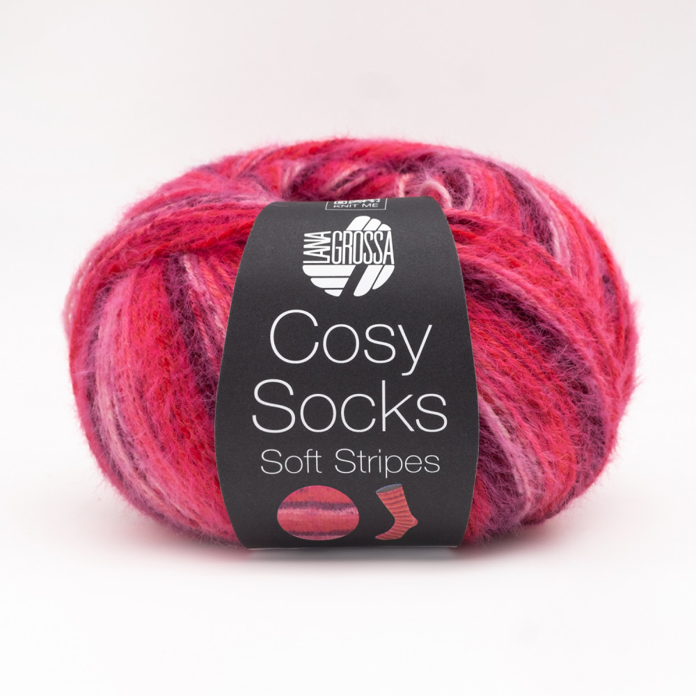 «Cosy Socks Soft Stripes» — название отражает уютный характер пряжи и мягкие полосатые переходы цвета, создающие эффектный узор без сложных приёмов. В составе — мериносовая шерсть с добавлением синтетических волокон для прочности и износостойкости. Нить мягкая, тёплая и приятная к телу, комфортна даже при длительной носке. Идеально подходит для носков, а также для варежек, шапок, шарфов и домашних аксессуаров.
