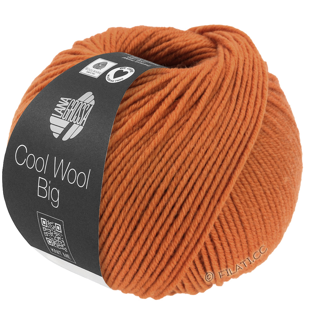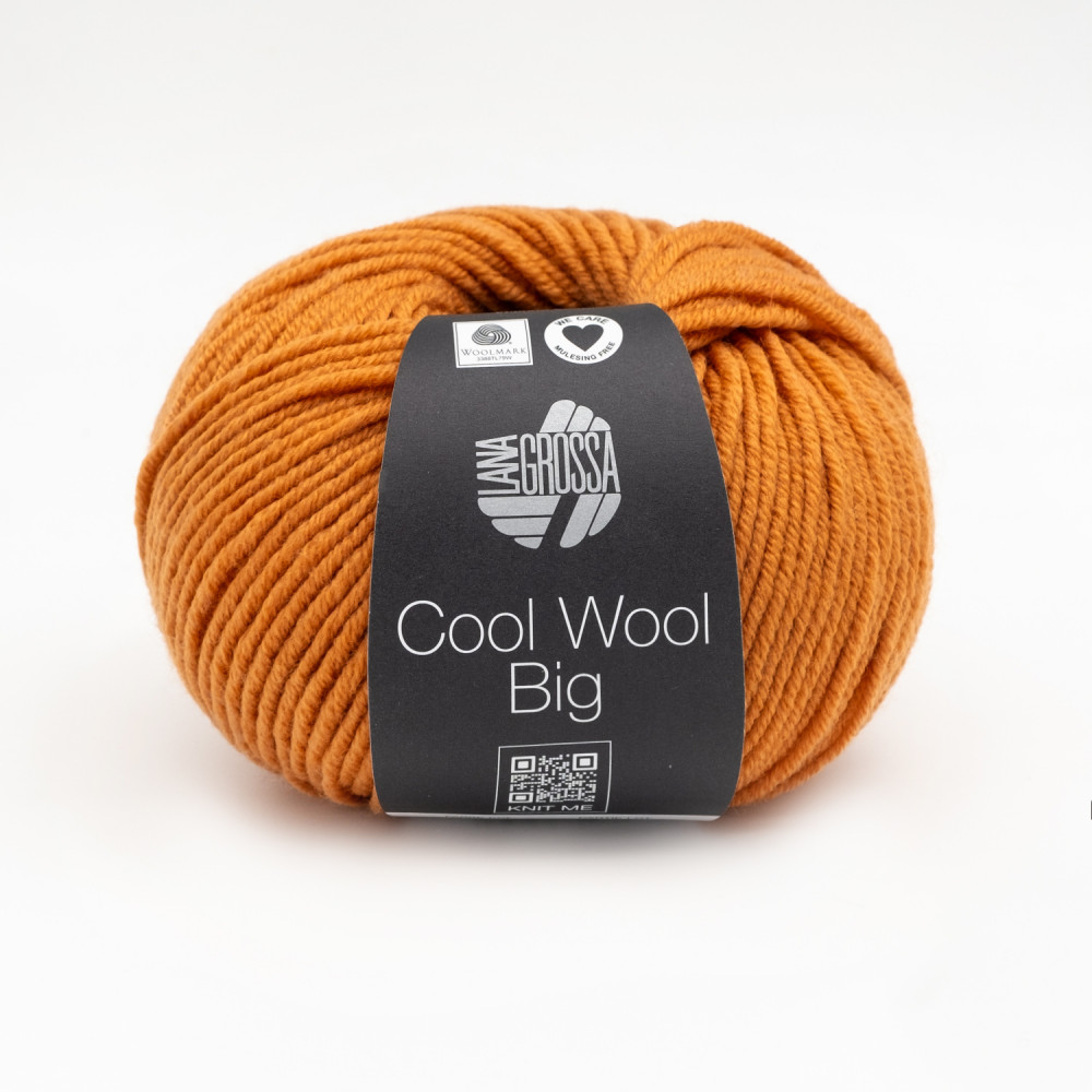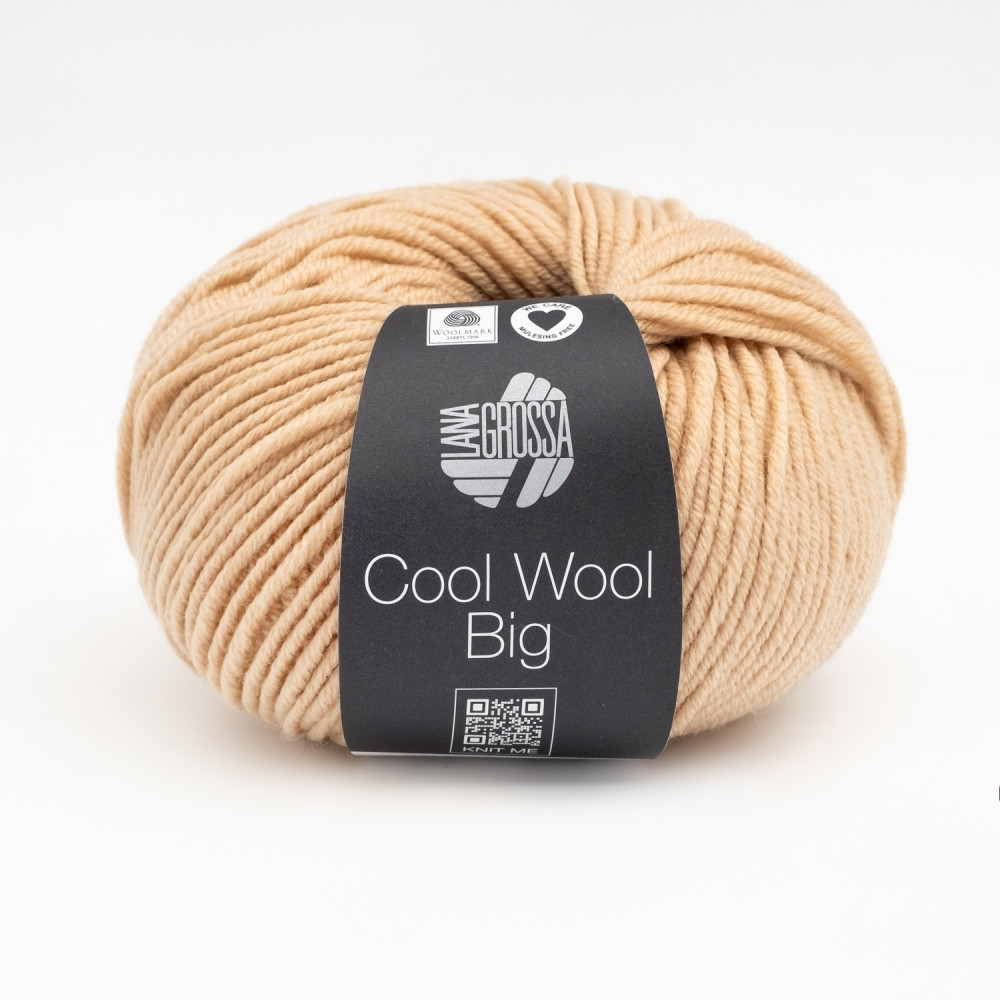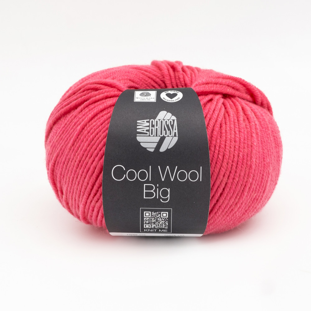Lana Grossa Cool Wool Big   Роскошная пряжа классической крутки из супер тонкой мериносовой шерсти. Полотно получается стабильным и пластичным. Нить упругая, хорошо держит резинку и узоры: шишечки, араны, косы.   Пряжа идеально подходит для вязания аксессуаров: шапок, повязок, перчаток, варежек и шарфов. А также для плечевых изделий любого кроя. Примерный расход на повязку на голову 1-2 мотка, варежки — 2 мотка, шапку — 2-3 мотка, свитер размера M — от 10 мотков.