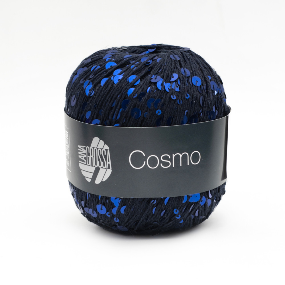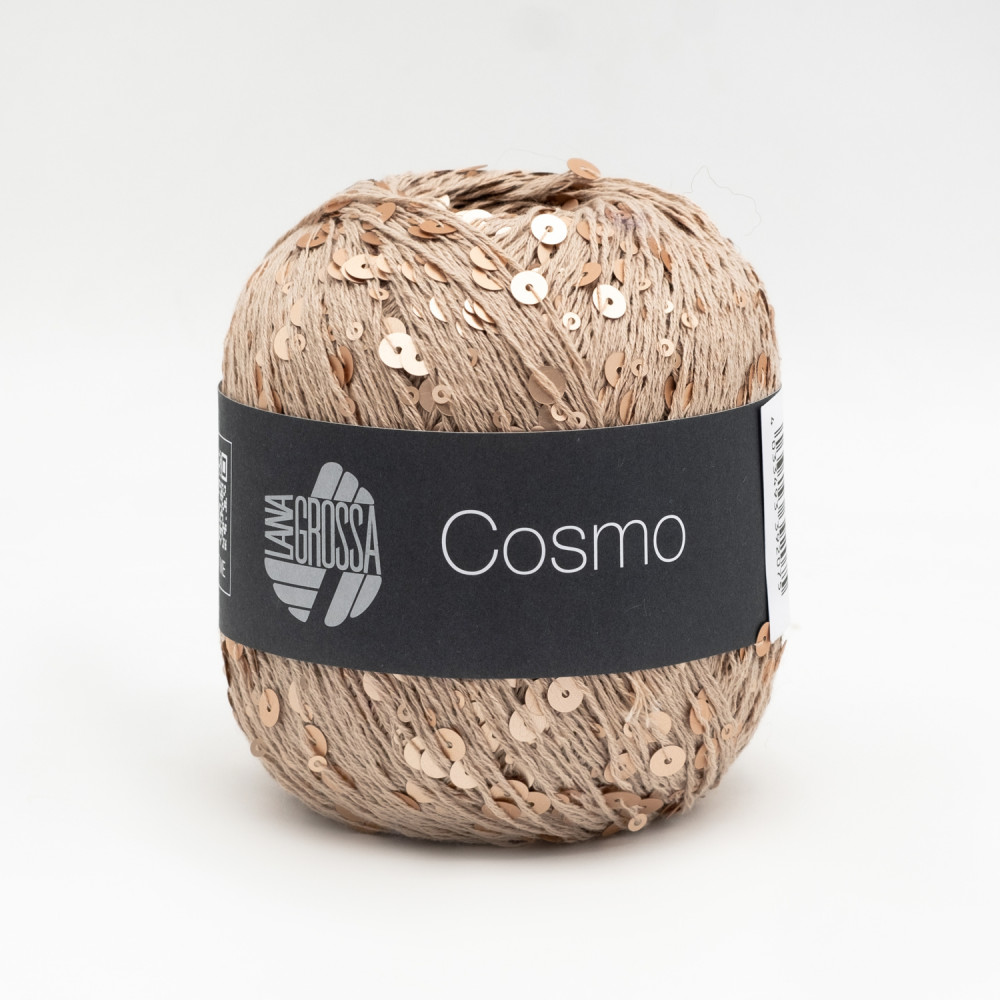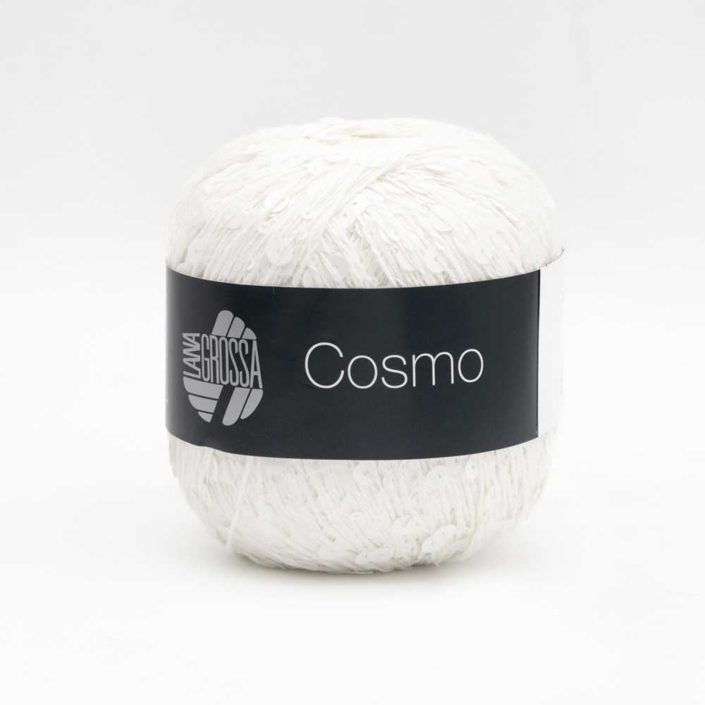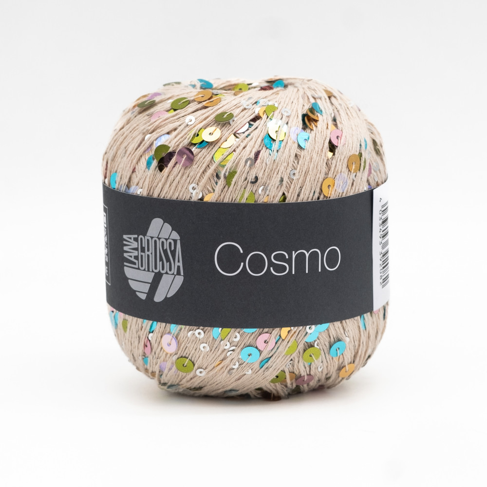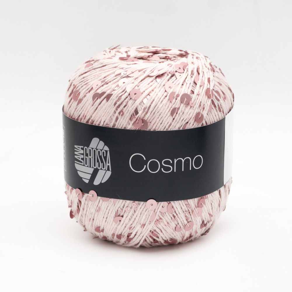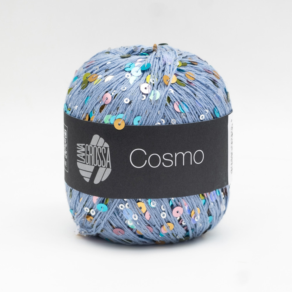 Пряжа Lana Grossa Cosmo получила своё название благодаря лёгкому блеску пайеток, создающему «космическое» мерцание в полотне. Нить выполнена на основе мягкого хлопка с добавлением декоративных элементов, остаётся приятной к коже и дышащей. Она подходит для создания нарядных вещей — топов, накидок, палантинов, а также стильных аксессуаров. Cosmo станет отличным выбором для тех, кто хочет добавить изделию сияние, сохранив натуральность и комфорт.